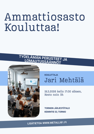 Koulutuksen järjestää yhteistyössä Ao81 ja Ao712 sekä Teollisuusliitto. Tervetuloa
